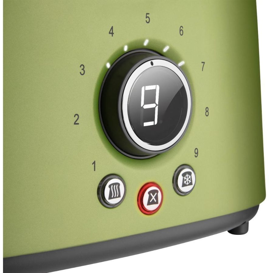 Vše snadno navolíte pomocí ovládání na přední straně topinkovače, které je navíc obohaceno o LED displej s indikátorem provozu. Přehledně tak vidíte stupeň intenzity opékání a zvolený program.