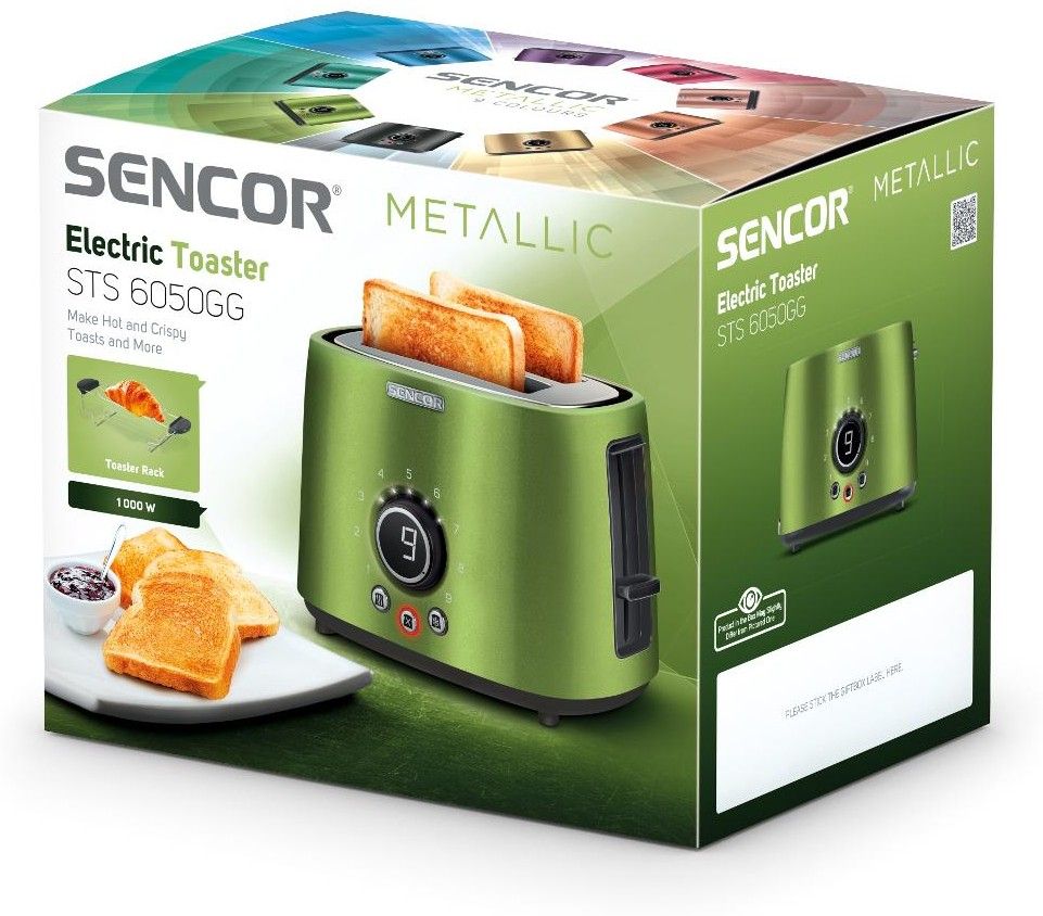 Elektrický topinkovač Sencor STS 6050GG vám dopřeje dokonale křupavou snídani a jeho elegantní nerezový design přinese oživení do vaší kuchyně. Disponuje 2 opékacími otvory a zvládne hned několik funkcí - rozmrazí a následně také opeče vámi zvolené pečivo. Zároveň nabízí tlačítko okamžitého přerušení provozu, proto můžete upravované pečivo kdykoli bezpečně vyjmout. Pokud byste na něj náhodou zapomněli nebo si chtěli ještě rychle připravit vajíčka, funkce opakovaného ohřevu vám udrží tousty dokonale teplé, bez dalšího vysušování. Tento topinkovač dále nabízí 9 stupňů intenzity pečení a jeho další velkou výhodou je ohřev pečiva pomocí odnímatelné mřížky. Po dokončení zvoleného programu topinkovač automaticky opekané pečivo vysune a vypne se.