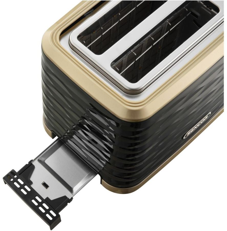 Topinkovač má výsuvnou přihrádku na drobky pod dvojicí opékacích otvorů, která usnadní péči o přístroj. Stačí ji jen vysunout a drobky vysypat do koše.