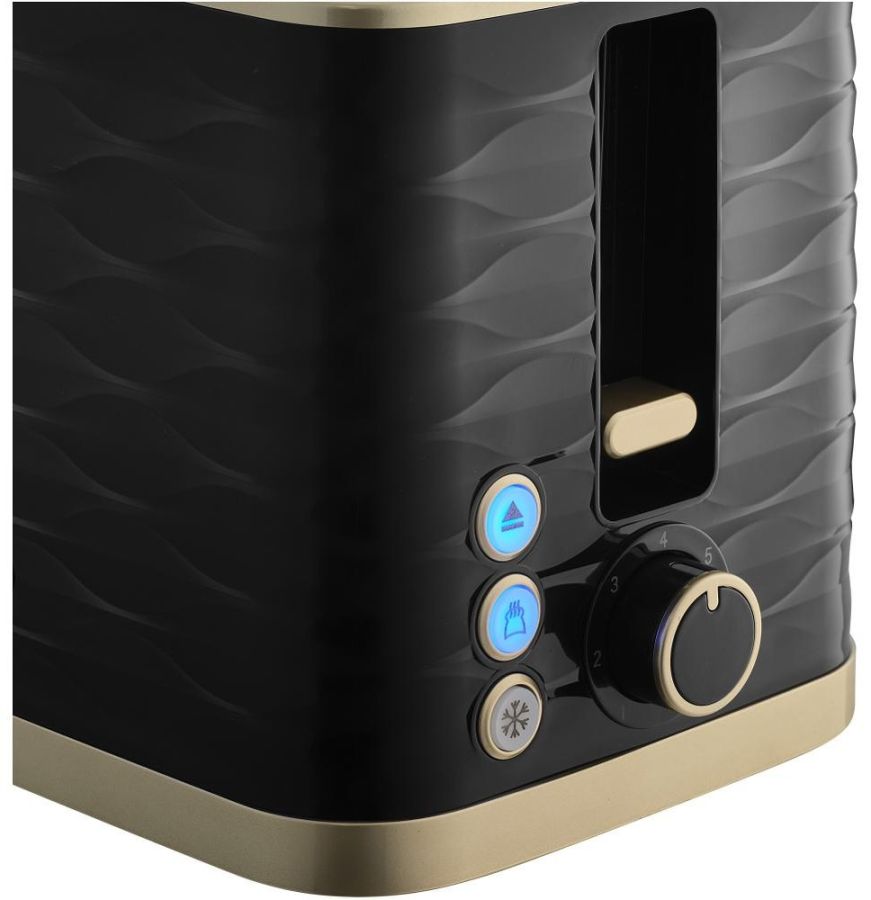 Topinkovač pro opékání 2 toastů současně. Má elektronický časovač, 7 stupňů opékání, funkci automatického centrování pro rovnoměrný ohřev silných i tenkých toastů a výsuvnou nádobu na drobky.