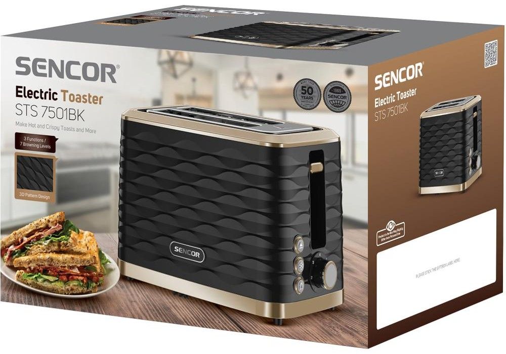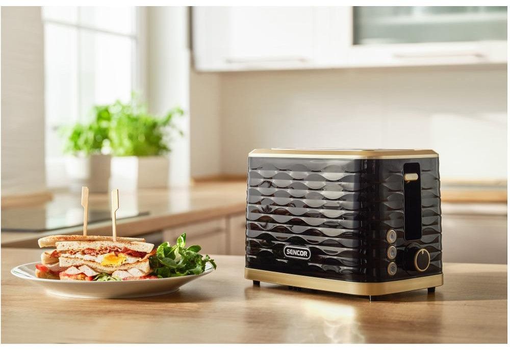Připravte si vynikající tousty, nejen na snídani, s elektrickým topinkovačem Sencor STS 7501BK. Je to elegantní přístroj, který vám dopřeje ty nejchutnější topinky. Hodí se do každé moderní kuchyně a nabízí opečení až 2 topinek současně s možností volby intenzity propečení. Samozřejmostí jsou funkce jako automatické centrování pečiva, okamžité přerušení provozu i možnost pečivo rozmrazit. Nabízí 7 intenzit pečení a automatický výsun pečiva s ukončením programu.