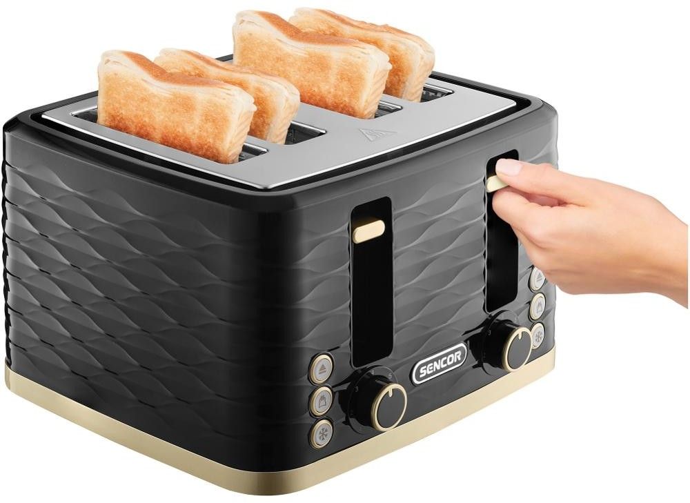 Topinkovač Sencor STS 7551BK má kromě klasického opékání i mnoho dalších funkcí. Například funkci rozmrazování zmrazeného pečiva nebo funkci opětovného ohřevu toustů. Velmi užitečná je i funkce vycentrování pečiva, která zajistí rovnoměrný ohřev tenkých krajíců.