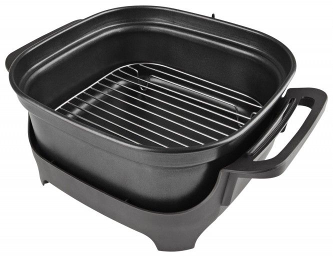 Víko má skleněný průzor, takže můžete vše bedlivě sledovat. Najdete na něm také speciální ventilační otvory. Pečicí nádoba je vyrobena z nepřilnavého teflonu a snadno se vyjímá i čistí. Stabilní podstavec dobře drží Pečenku na svém místě.