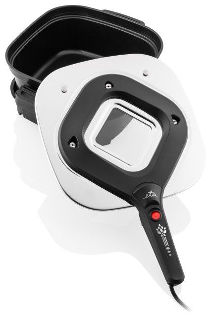 Tepelně izolovaná držadla umožňují pohodlnou a bezpečnou manipulaci. Víko je opatřeno skleněným průzorem pro snadnou kontrolu přípravy jídla a ventilačními otvory pro optimální odvod páry. Bezpečnostní pojistka zajistí automatické vypnutí přístroje při nesprávném sestavení nebo odejmutí víka, což výrazně zvyšuje bezpečnost používání. Nepřilnavý povrch nádoby zabraňuje připékání a usnadňuje čištění.