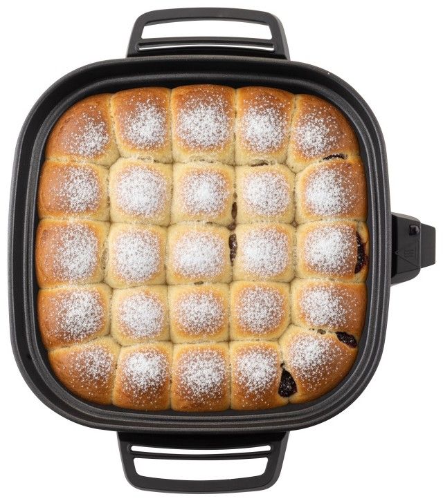 ETA Pečenka přináší skutečně všestranné využití – zvládne hravě připravit pokrmy vařené, dušené, pečené i zapékané. Díky opravdu úctyhodnému objemu 6 litrů v ní připravíte chutný oběd pro čtyřčlennou rodinu – upečete celou kachnu, králíka, vepřové koleno nebo tři celé ryby vedle sebe. Díky čtvercovému tvaru nádoby efektivně využijete její plochu. To může být ideální i pro přípravu hromady voňavých Honzových buchet, které potěší celou rodinu i hosty.