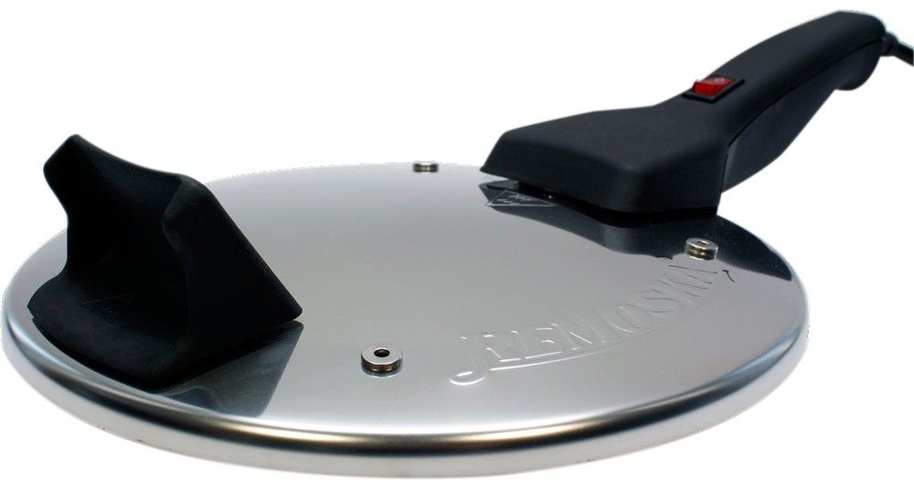 Horní část víka je vyrobena z nerezového plechu. REMOSKA® s víkem bez skla peče rovnoměrně a po celé ploše. Dolní část víka z hliníku je potažena nepřilnavým povrchem Teflon® Classic. Vypínač je umístěn na horní části držadla, tak aby kontrola stavu zap/vyp byla možná v jakékoliv poloze. Umístění vypínače na horní části držadla usnadňuje ovládání pro praváky i leváky. Víko je navrženo tak, aby mohlo být položeno na pracovní plochu topnou částí směrem vzhůru. Mísa je vyrobena z hliníku (pro dobrý přenos tepla z víka na mísu) a povrchově potažena materiálem Teflon® Classic. Stojan je vyroben z tepelně odolného plastu.