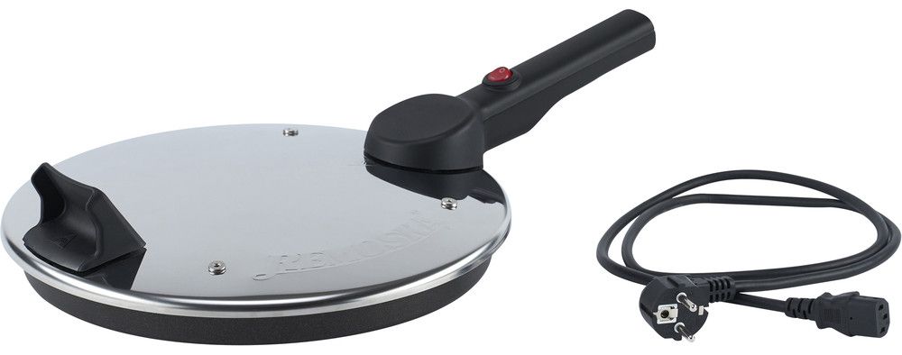 Horní část víka je vyrobena z nerezového plechu. REMOSKA® s víkem bez skla peče rovnoměrně a po celé ploše. Dolní část víka z hliníku je potažena nepřilnavým povrchem Teflon® Classic. Vypínač je umístěn na horní části držadla, tak aby kontrola stavu zap/vyp byla možná v jakékoliv poloze. Umístění vypínače na horní části držadla usnadňuje ovládání pro praváky i leváky. Víko je navrženo tak, aby mohlo být položeno na pracovní plochu topnou částí směrem vzhůru. Mísa je vyrobena z hliníku (pro dobrý přenos tepla z víka na mísu) a povrchově potažena materiálem Teflon® Classic. Stojan je vyroben z tepelně odolného plastu.