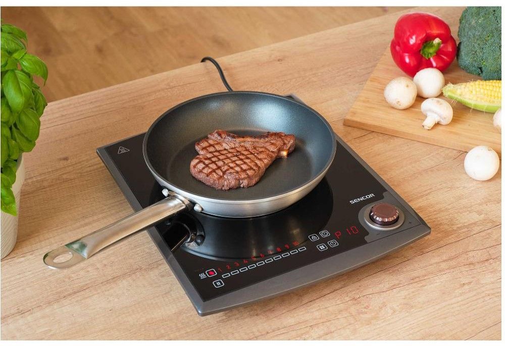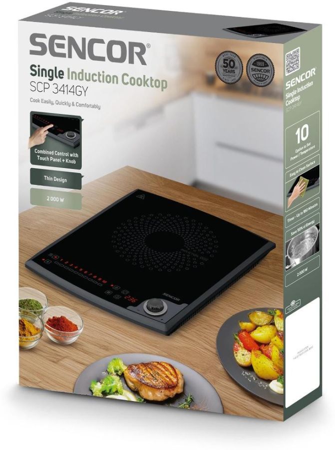 Ať už hledáte doplněk ke klasickému sporáku nebo ideální řešení na chatu, do karavanu nebo třeba na kempování, jednoplotýnkový indukční vařič Sencor SCP 3414GY je přesně pro vás. S výkonem 2 000 W a hned 10 teplotními úrovněmi (60–240 ℃) bez potíží na plotýnce uvaříte či usmažíte to, na co máte právě chuť. Má jednoduché ovládání dotykem prstu a otočným knoflíkem, časovač od 1 minuty po 3 hodiny, a díky kompaktním rozměrům je snadno přenosný.