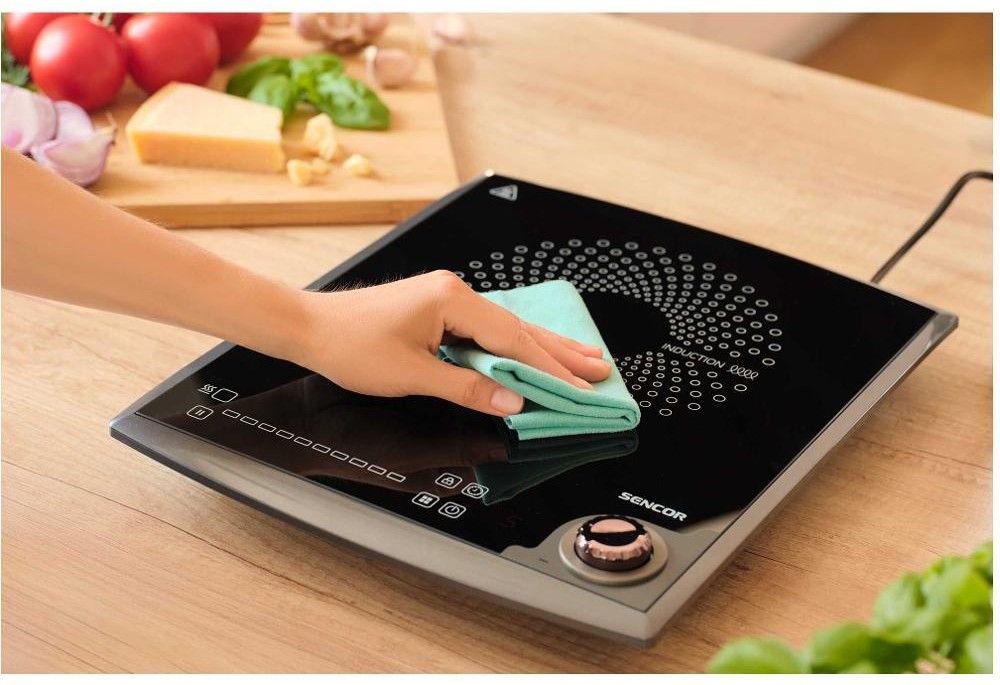 Povrch vařiče se dobře čistí. Je nutné dbát na to, aby se povrch uklízel až po úplném vychladnutí. Nečistoty stačí setřít navlhčenou textilii, v případě většího znečištění poslouží kuchyňský saponát. Vařič se vám za péči odmění dokonalým jídlem.