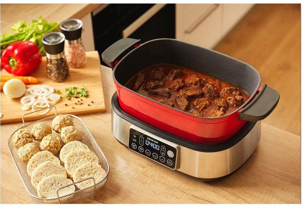 - Multifunkční využití ideální pro pomalé vaření, dušení, smažení, vaření v páře nebo pečení