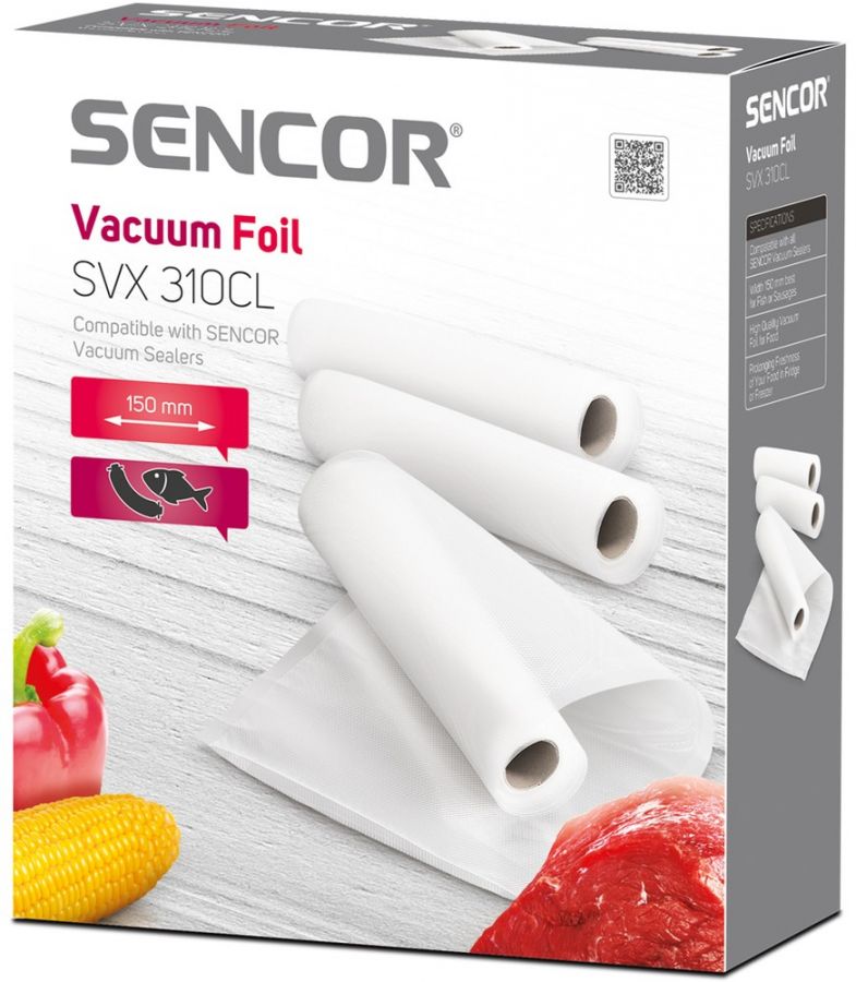 Vakouvá fólie je kompatibilní se všemi SENCOR Vakuovacími svářečkami fólií.