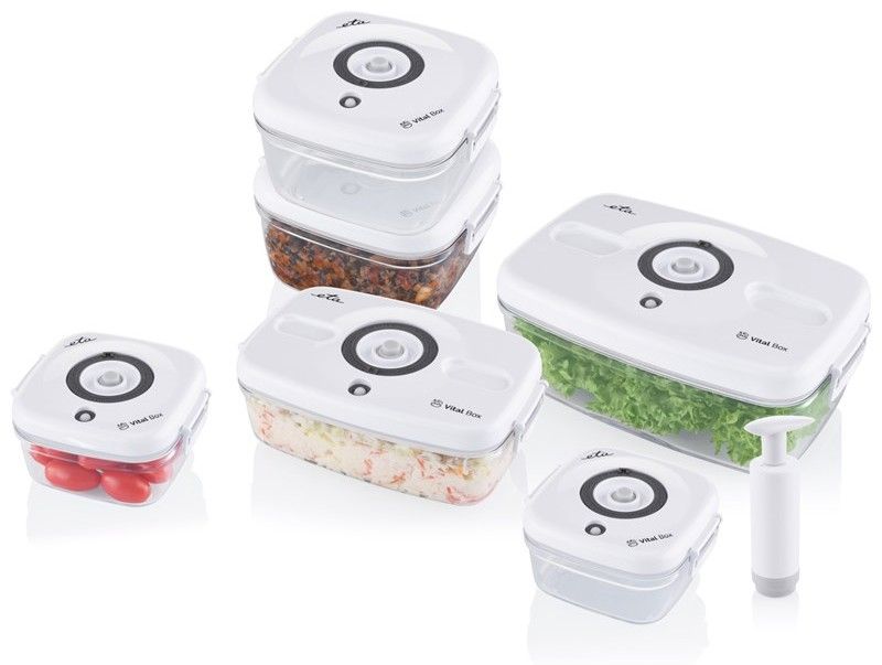 Díky vakuovacím boxům můžete uchovávat i křehké nebo vodnaté potraviny, které nelze vakuovat v sáčcích. Vakuovat můžete ale také saláty či jiné zbytky jídla, které zůstanou čerstvá mnohem déle. Skvělou vychytávkou je i praktická značka, pomocí které zaznačíte den zavakuování a budete tak mít o všem přehled.