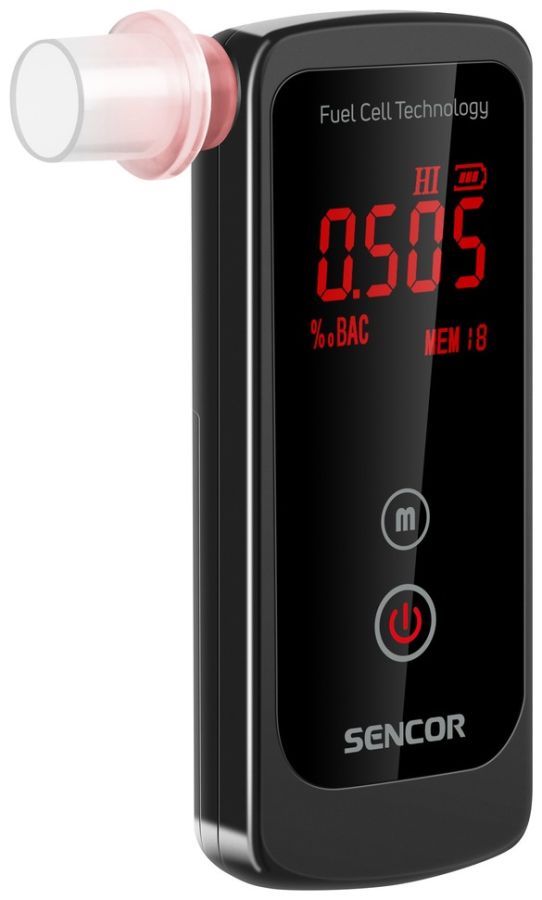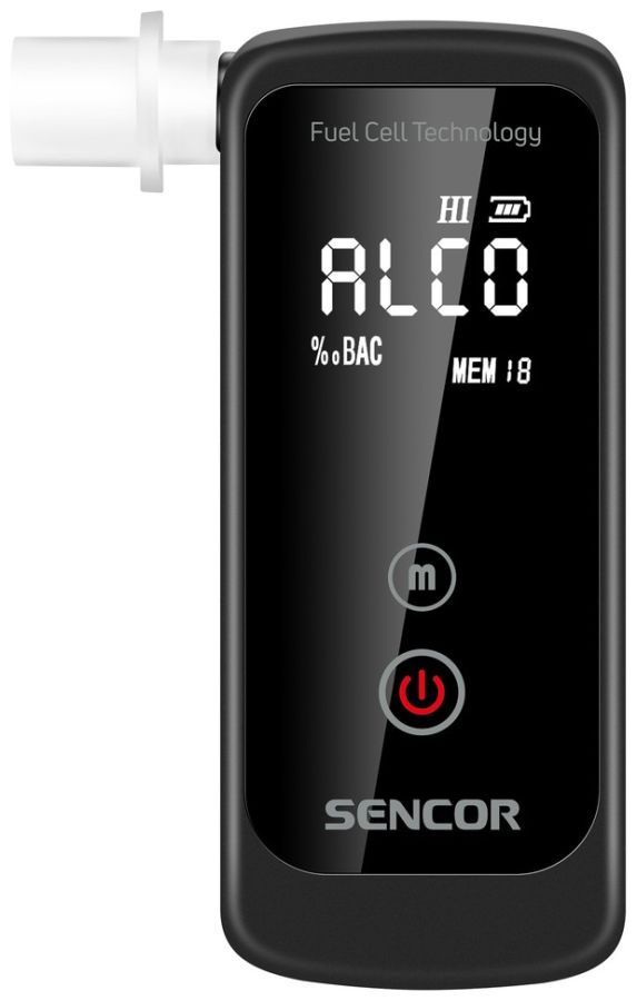 Profesionální alkohol tester Sencor SCA BA40FC zjistí přesnou hodnotu alkoholu v krvi z Vašeho dechu během pár sekund. Pomocí kalibrovaného elektrochemického senzoru (Fuel Cell - palivový článek) probíhá měření alkoholu v dechu s přesností lepší než 0,008‰ BAC. Proto už se například nemusíte obávat zbytkového alkoholu, který by u Vás levné alkohol testery s polovodičovým čidlem nemusely odhalit. Široký rozsah měření od 0 do 4 ‰ BAC pokryje potřeby všech běžných uživatelů. Zařízení disponuje pamětí pro posledních 20 měření a je vybaveno dvoubarevným displejem pro optické zvýraznění překročení hodnoty alarmu. Možnost výběru jednotky měření ‰ BAC nebo mg/L a nastavení hodnoty alarmu měření. Součástí balení jsou 2 náhradní náustky.