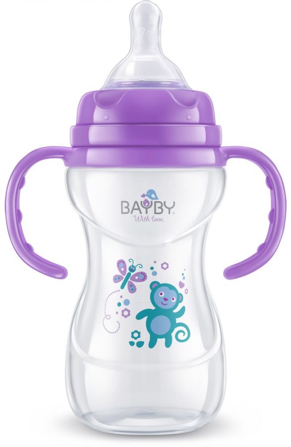 Kojenecká láhev s úchyty o objemu 240ml pro děti od 6 měsíců.