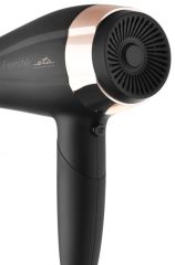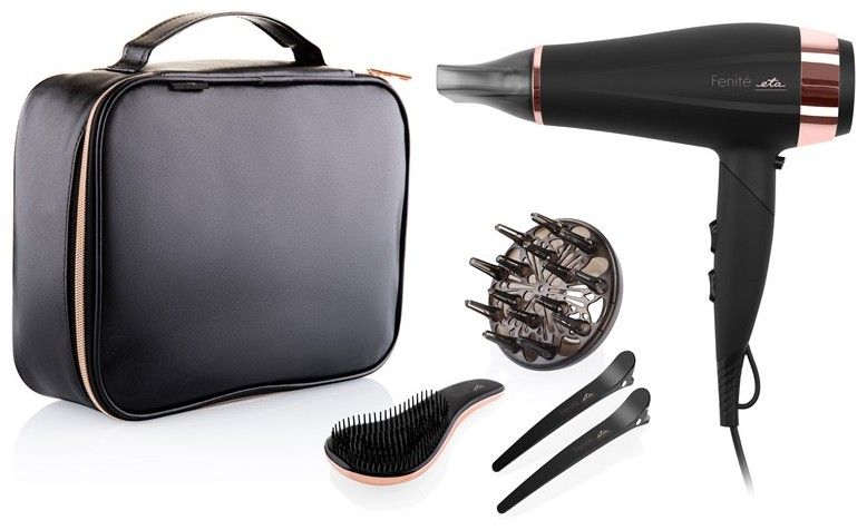 Vysoušeč vlasů ETA Fenité je navržen tak, aby sám odrážel vše, co svým uživatelkám nabízí – pyšní se praktickým tvarem, jemnými liniemi a elegantním zpracováním v černé barvě s rosegold detaily. Ergonomická rukojeť navíc perfektně padne do každé ruky. Napájecí kabel o délce 1,7 m přitom zajišťuje snadnou manipulaci a nechybí ani praktické poutko pro zavěšení.