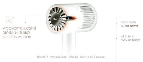 Díky extrémně výkonnému digitálnímu motoru TURBO BOOSTER, který se pyšní až o 30 % vyšší účinností, budou vaše vlasy vysušené během několika okamžiků. Motor navíc vyniká dlouhou životností a nevídanou odolností.