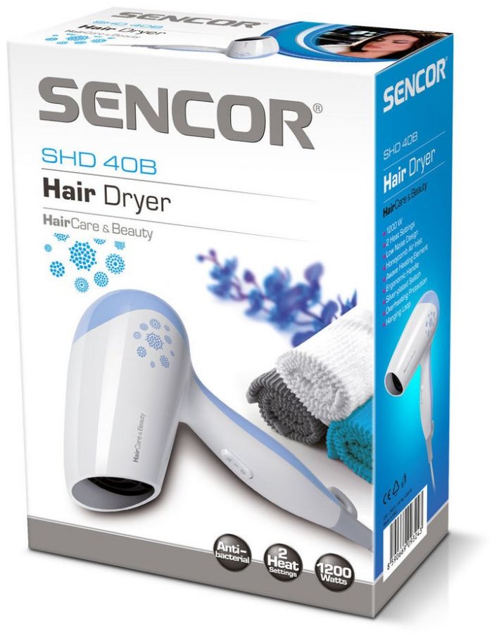 Fen s antibakteriální povrchovou úpravou. Má 2 stupně výkonu , závěsné očko a tepelnou pojistku proti přehřátí motoru.