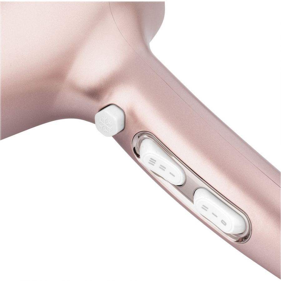 Fen s výkonným motorem s dlouhou životností, arganovým olejem, keratinem, 3 stupni teploty, 2 stupni rychlosti, ionizací a pojistkou proti přehřátí.