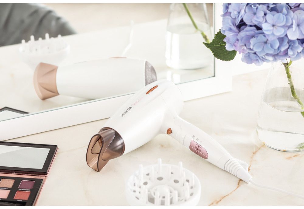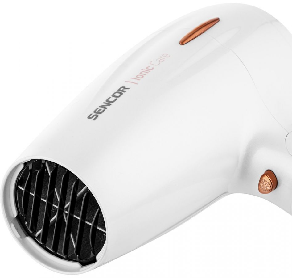 Fen s výkonným motorem s dlouhou životností, 3 stupni teploty, 2 stupni rychlosti, ionizací a pojistkou proti přehřátí.