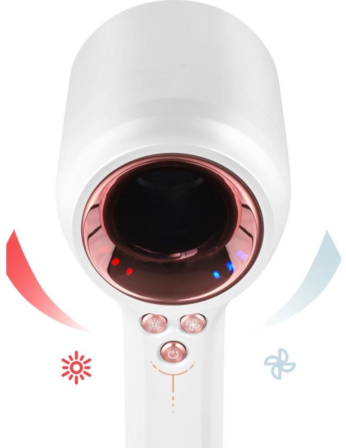 Vysokorychlostní vysoušeč vlasů s BLDC motorem má 3 rychlosti, 4 teploty a ionizaci.