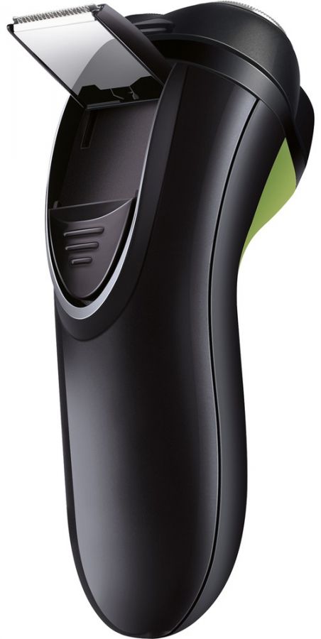 Elektrický frézkový holicí strojek s integrovaným nabíjecím akumulátorem a se třemi nezávislými výkyvnými hlavicemi.