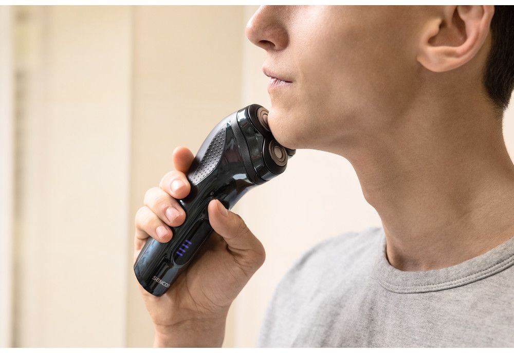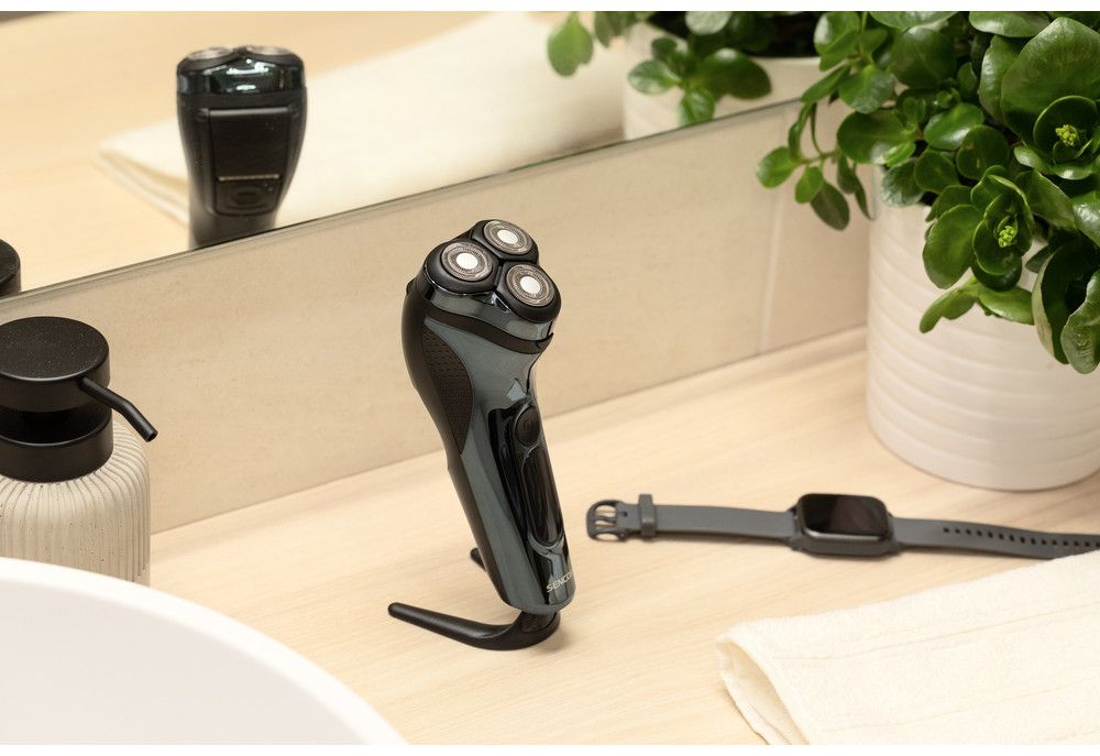 Značka Sencor by vám ráda představila jednoho zástupce z řad holicích strojků. Je jím holicí strojek SMS 4210BK a upoutá již na první pohled díky jeho třem výrazným holicím hlavám, které během použití rotují. V každé z holicích hlav nalezneme ostré břity z kvalitní nerezové oceli pro perfektní oholení různých délek vousů. Aby vaše používání tohoto pomocníka bylo co nejkomfortnější, jeho hlučnost dosahuje maximální úrovně 72 dB. Velmi podstatné je, že uvnitř přístroje se nachází výkonný motor a vestavěná baterie o kapacitě 700 mAh. Oba tyto parametry umožňují strojku plně fungovat až 50 minut! Ve chvíli, kdy dojde k vybití baterie využijete technologii Direct Drive, díky které není nutné čekat na naplnění kapacity baterie, ale lze pokračovat v holení i během toho, co se přístroj nabíjí ze sítě. K plnému nabití pak dojde zhruba za 2 hodiny.