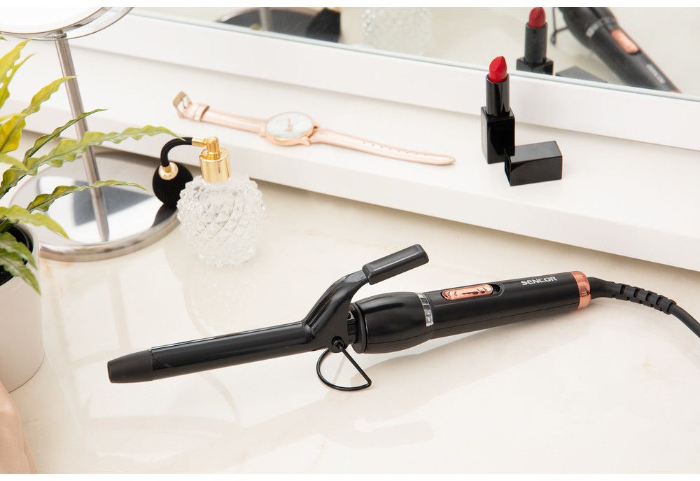 Klešťová kulma s extra hladkým keramickým povrchem DeepBlack o průměru 19 mm.