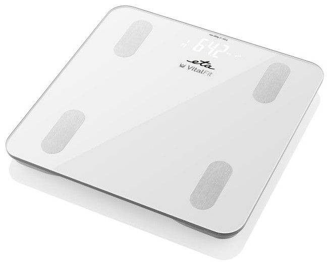 Analytická osobní váha ETA Vital Fit nadchne nejen milovníky decentní bílé barvy, ale i příznivce čísel a chytrých technologií. Při vážení vás navíc nečeká žádné zdržování – stačí se jednoduše postavit na skleněnou vážicí plochu a vaše pohotová pomocnice vám to okamžitě vyčíslí.