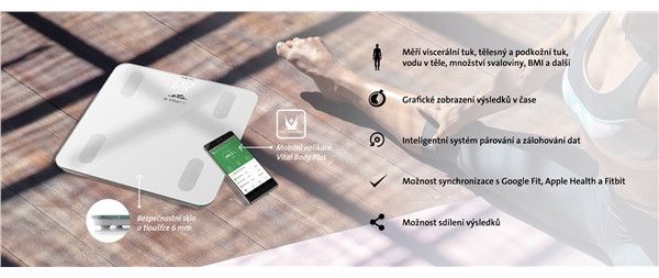 Po spárování váhy s mobilním telefonem vás aplikace Vital Body Plus zahrne cennými informacemi, které o vaší aktuální kondici mnohé napoví. Naměřená data vám nejen přehledně zobrazí, ale navíc je analyzuje a shromažďuje. Parametrů, které takto můžete sledovat, je více až 18.