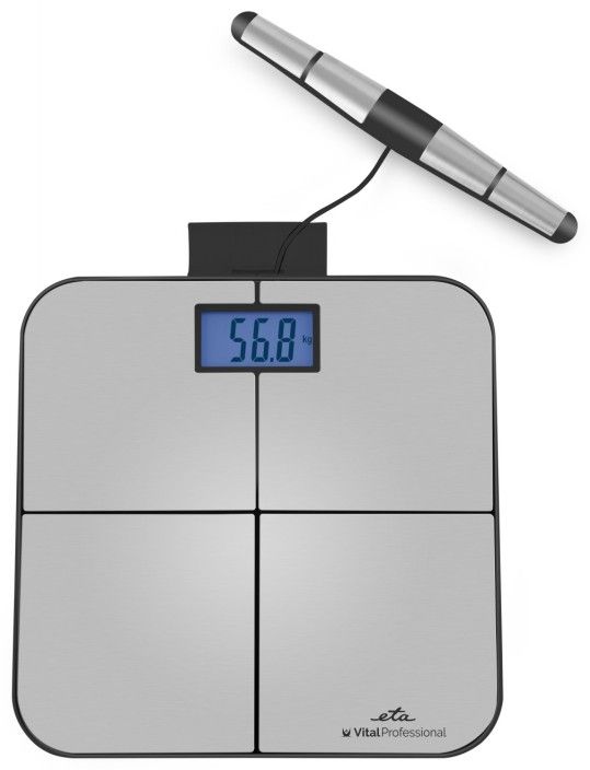 Pro ještě přesnější měření je analytická váha ETA Vital Professional opatřena ručním snímačem a 8 snímacími elektrodami. Na naměřené hodnoty se tak můžete opravdu spolehnout. Vážení se spustí automaticky – stačí se na váhu postavit.