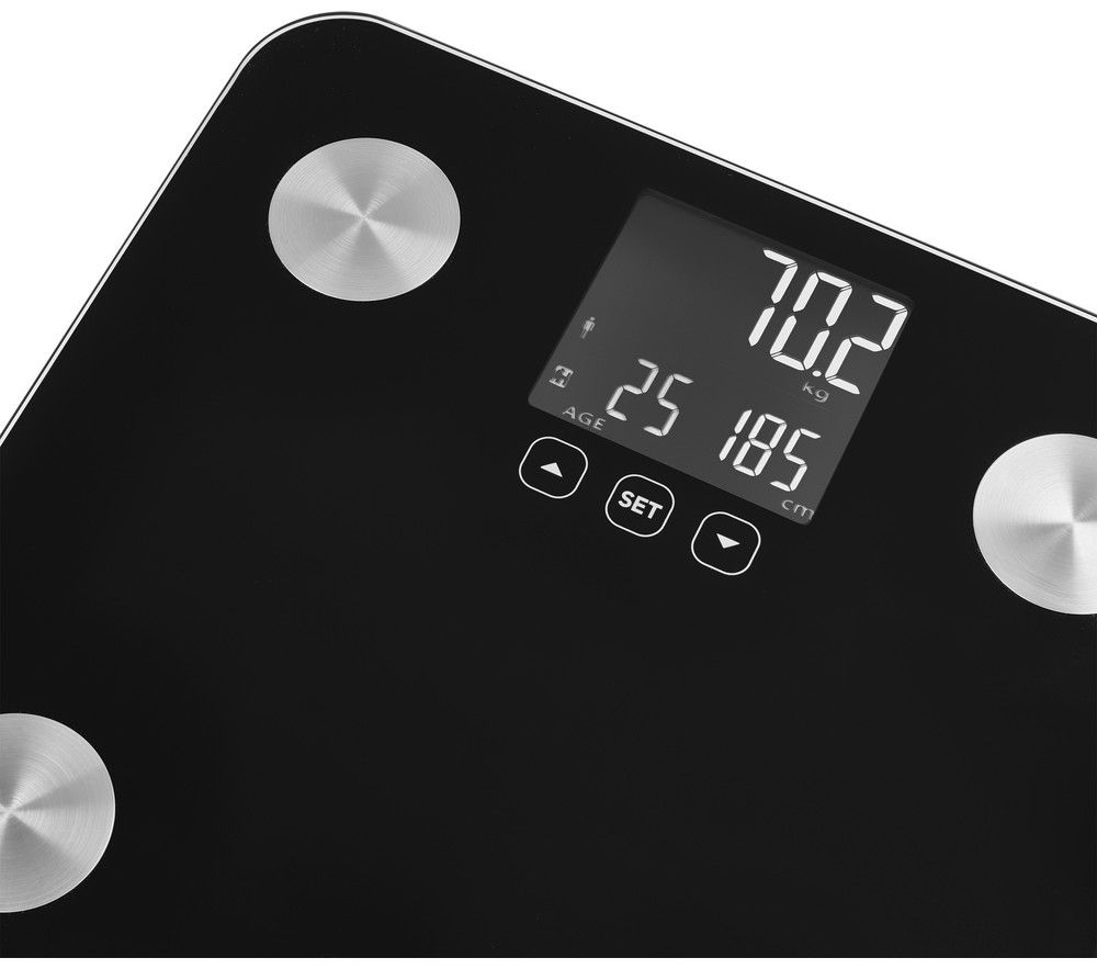 S osobní fitness váhou velmi snadno získáte přehled o stavu svého těla. Váha zváží nejen hmotnost, ale změří a provede i analýzu tělesných parametrů. Váha se také jednoduše ovládá pomocí dotykových tlačítek a přehledného podsvíceného displeje. Váha zaujme také svým designem se skleněnou vážící plochou. Váha se tak perfektně hodí do jakékoliv místnosti, a navíc se snadno i udržuje.
