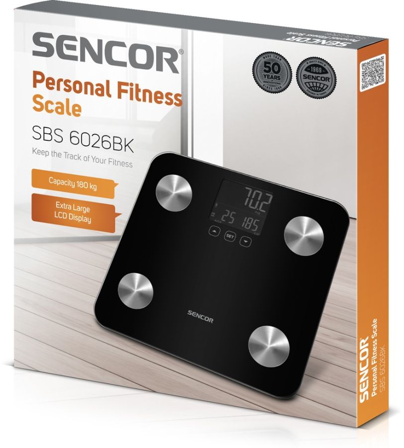 SENCOR SBS6025WH bíláDigitální skleněná fitness osobní váha s maximální nosností do 180 kg a přesností vážení s rozlišením do 100...SBS6025WH bílá536 bez DPH649 Kč