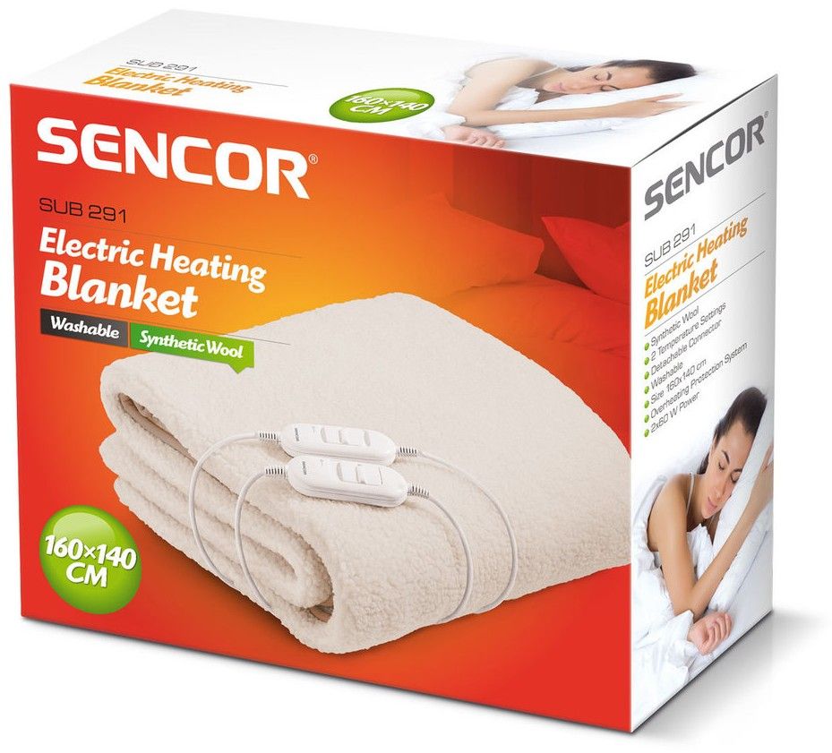 Vyhřívací deka SENCOR SUB 291 o rozměru 160x140 cm je určena na dvojlůžkovou postel. Je vyrobena ze 100% polyesteru (Polar Fleece). Tento na omak velmi příjemný materiál již sám o sobě slibuje vysokou hřejivost. Jakmile zapnete vyhřívání, rozsvítí se kontrolka zapnutí. Intenzitu vyhřívání si volíte 2 stupni nastavení teploty na dálkovém ovladači. Deka má ochranu proti přehřátí. Po odejmutí kabelu s ovladačem je možné ji prát.
