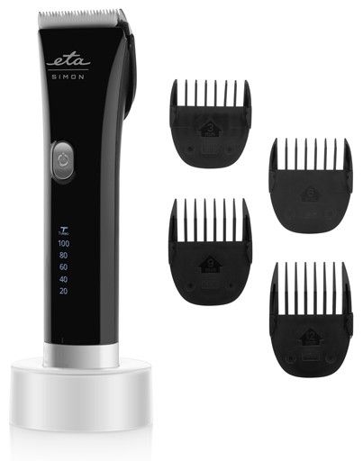 Elegantní design doplňuje přehledný LED displej s indikací úrovně nabití akumulátoru. Nechybí zde ani tlačítko ON / OFF s funkcí TURBO. Maximální doba provozu je 150 minut, což vám bohatě vystačí na všechny kadeřnické výstřelky. Pokud se vám ETA Simon přecijen vybije, v nabíjecím stojanu bude opět připraven bude za 2 hodiny. Stojan také slouží pro bezpečné uložení zastřihovače.
