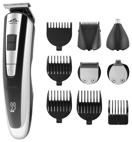 Zastřihovač vlasů s 9 výměnnými nástavci, 1,5 hodiny nabíjení a 60 minut provozu.