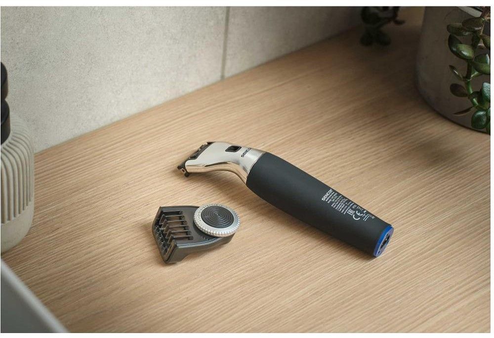 Nastavitelný hřebenový nástavec lze nastavit na délky od 0,5 do 10 mm, a to ve 20 různých úrovních. Kratší délky využijete na zkrácení vousů, střední na chlupy a delší na zastřižení vlasů.