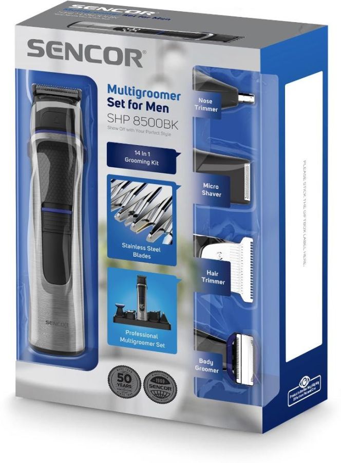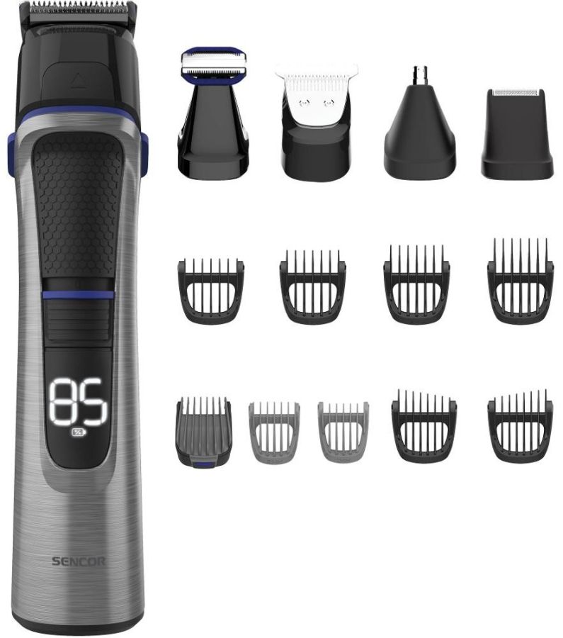 - 14 vyměnitelných doplňků – Zastřihovač vlasů, Zastřihovač těla, Zastřihovač nosu, Mikroholicí strojek, Hřebeny, Ušní zastřihovač