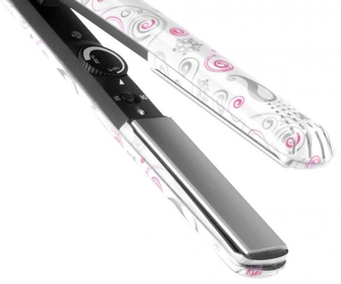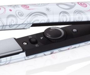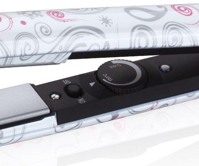 Elegantní žehlička na vlasy s keramickými odpruženými destičkami, plynule nastavitelnou teplotou 120 - 200°C a otočným kabelem.