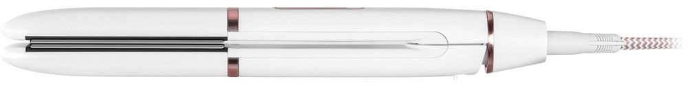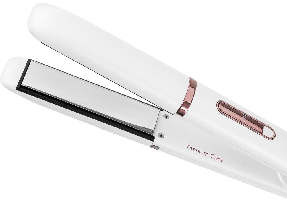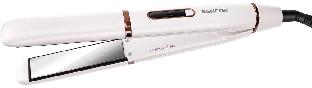Žehlička na vlasy je vybavena titanovými destičkami, max. teplotou do 230°C a otočným kabelem s délkou 180 cm.