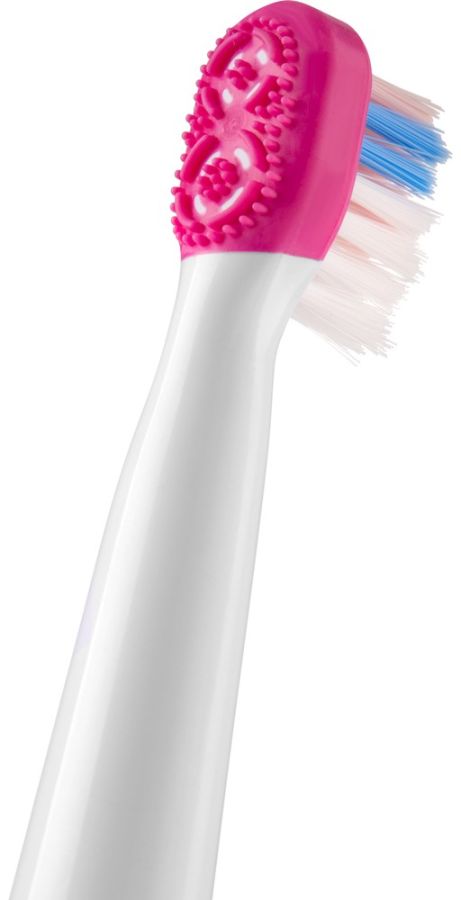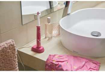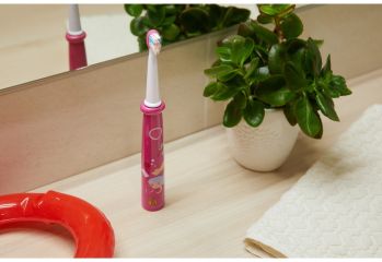 Elektrický dětský zubní kartáček má 2 přednastavené čistící a regenerační programy. LED ukazatel stavu baterie