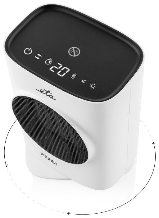 S délkou kabelu 1,5 metru ho snadno umístíte, kam potřebujete. Ať už doma v ložnici, pracovně, nebo víkendově na chalupě. Teplovzdušný ventilátor ETA Fogos II s PTC topnými tělesy je praktický pomocník, který vás v zimě nenechá na holičkách.