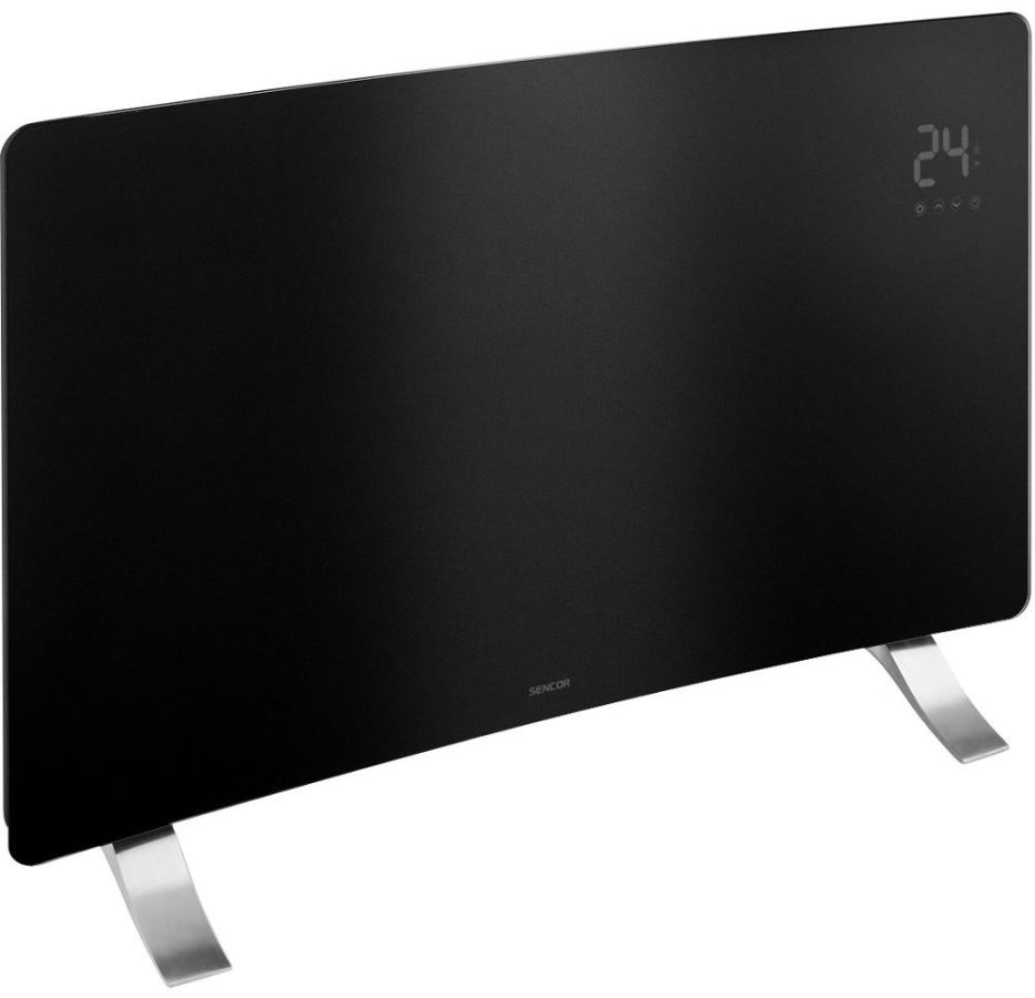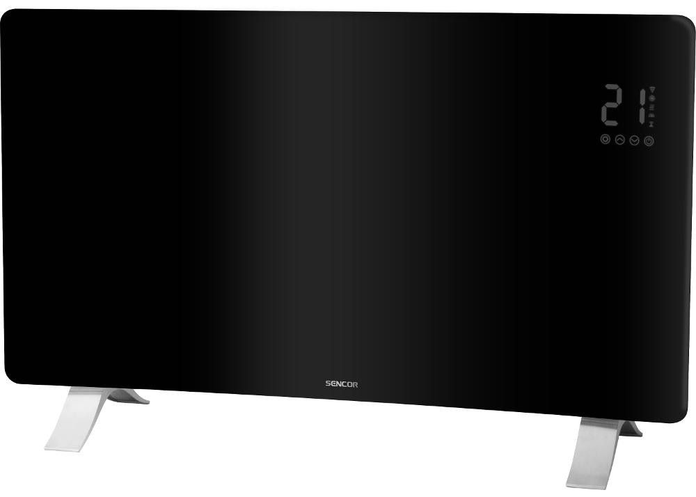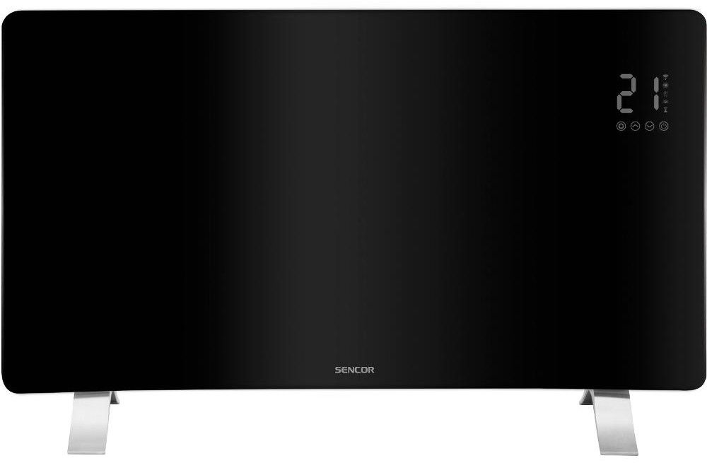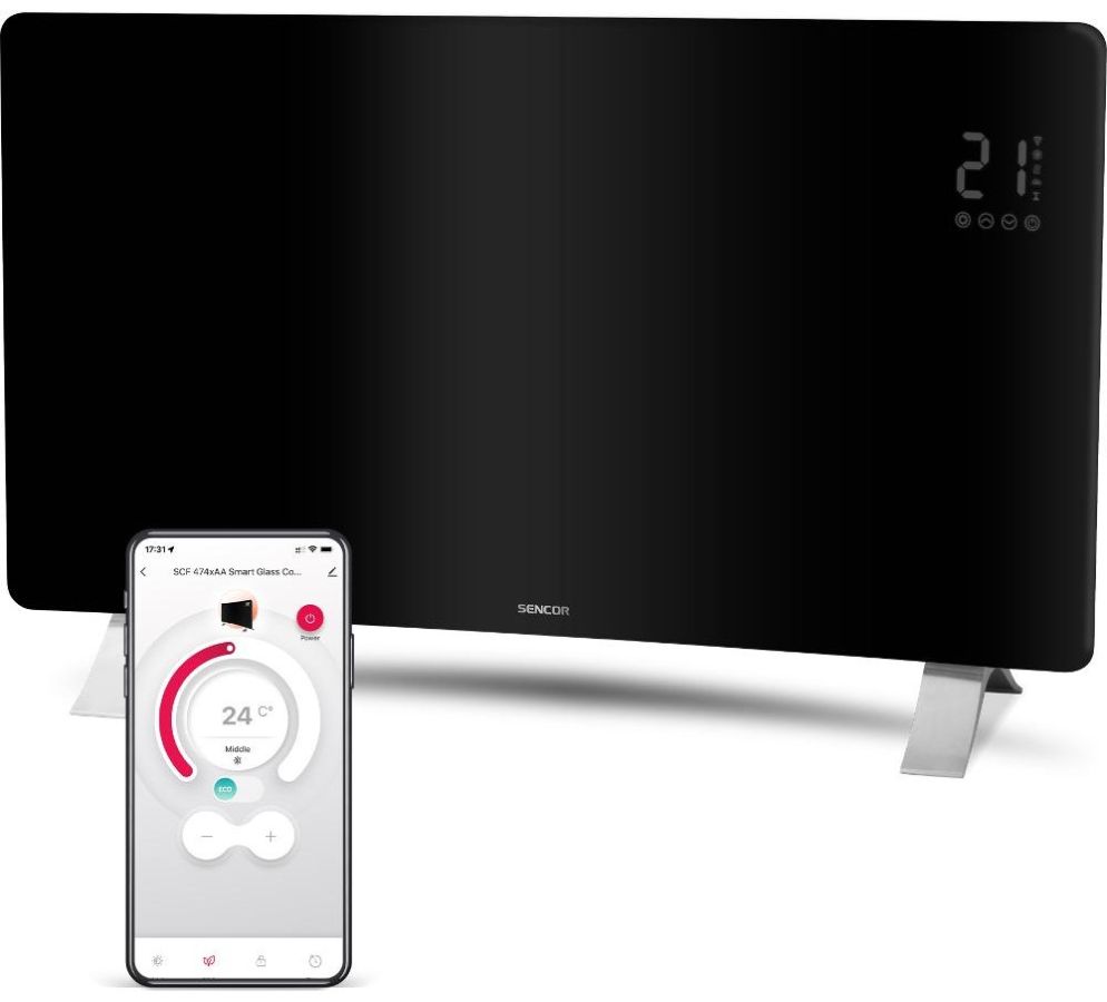 Chytrý skleněný konvektor WI-FI nabízí 2 nastavení ohřevu, dotykové ovládací prvky, Wi-Fi ovládání přes mobilní aplikaci Sencor HOME a 24 hodinový časovač.