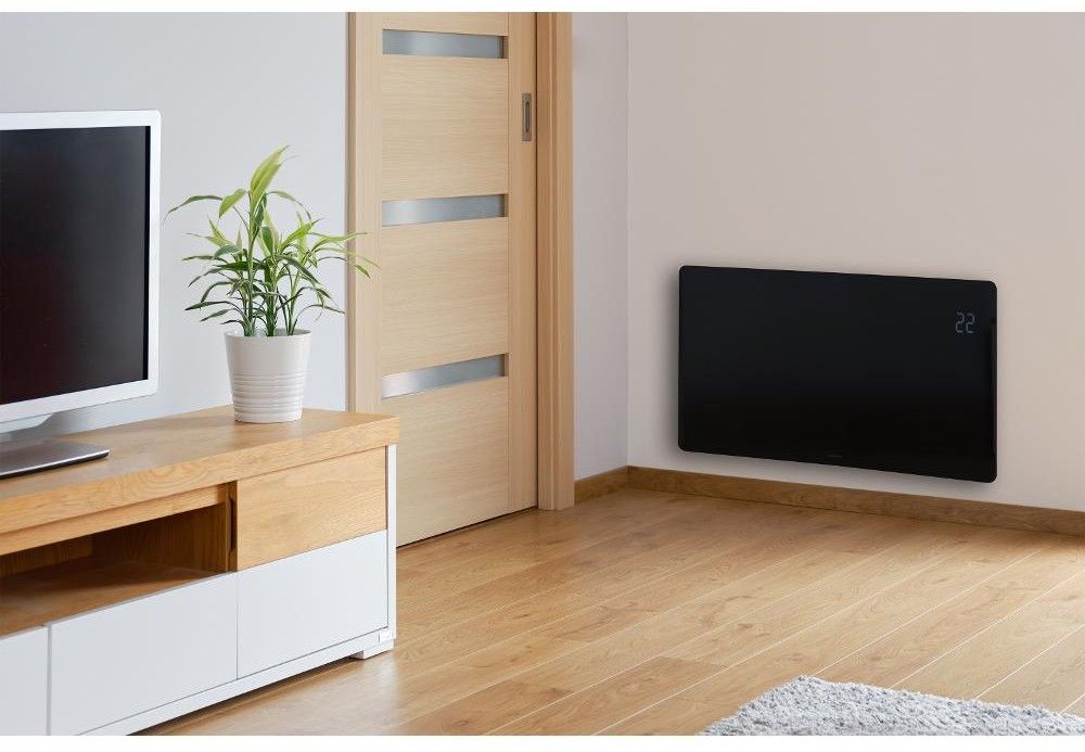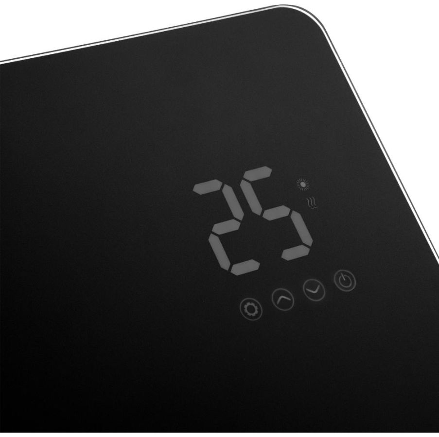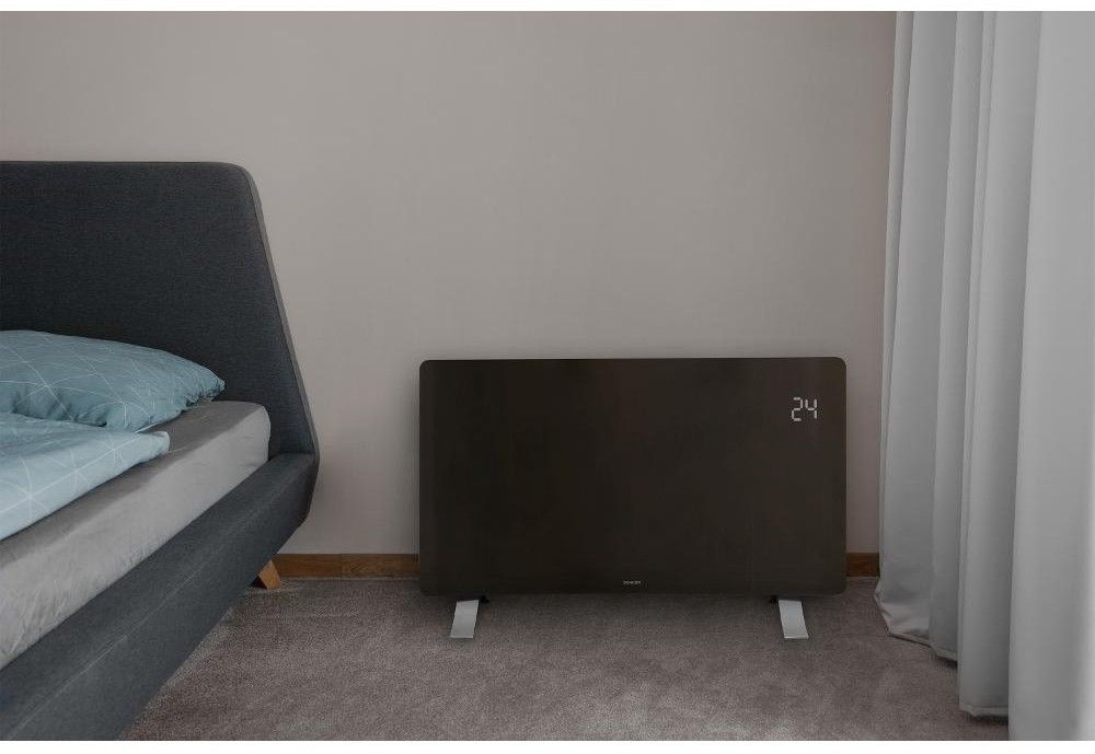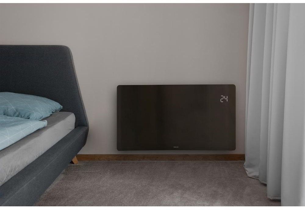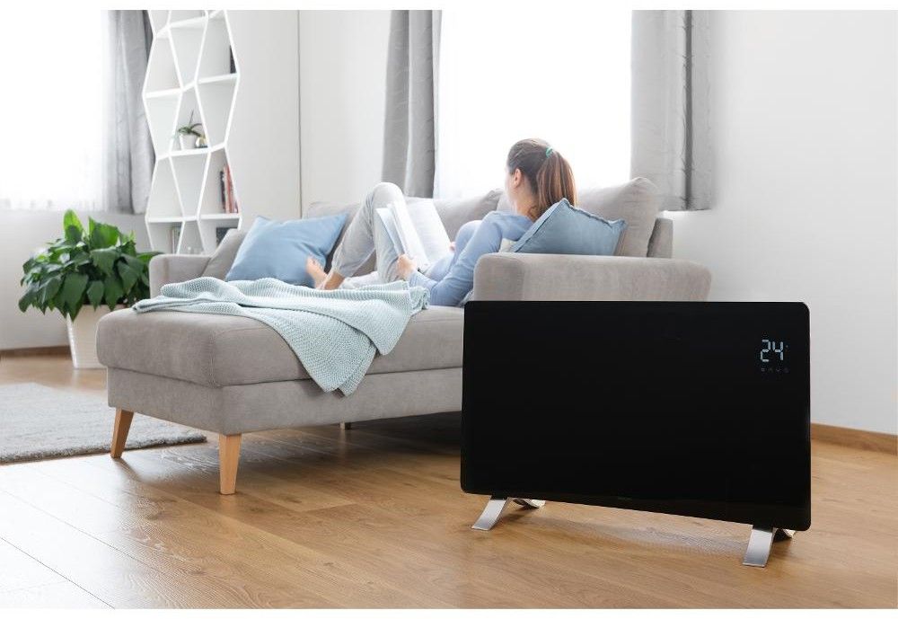 Skleněný konvektor má v sobě zabudovaný topný hliníkový článek ve tvaru „X“, čímž je ideální pro rovnoměrnou distribuci tepla a rychlé zahřátí. Na topení si můžete navolit také požadovaný výkon, a to ve dvou úrovních - 1 200 W a 2 400 W. Ohromí vás také rozsahem nastavení teploty od 5 až do 45 °C. Konvektor se snaží minimalizovat spotřebu energie, a tak v případě otevřeného okna zabraňuje tepelným únikům a se sám vypne.