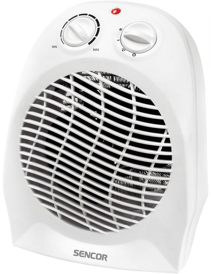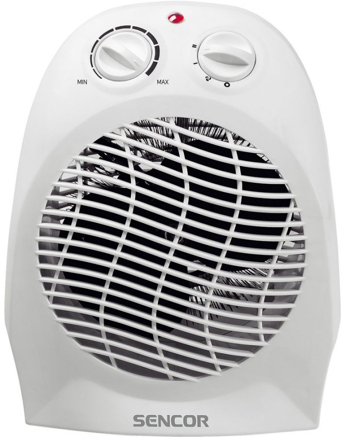 Teplovzdušný ventilátor s plynule regulovatelným termostatem, bezpečnostní pojistkou a ochranou proti přehřátí.