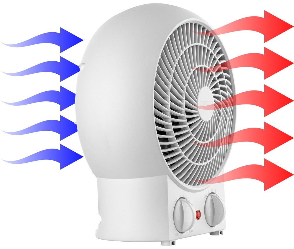 Teplovzdušný ventilátor s ochranou proti přehřátí, světelnou kontrolkou zapnutí a funkcí studeného vzduchu.