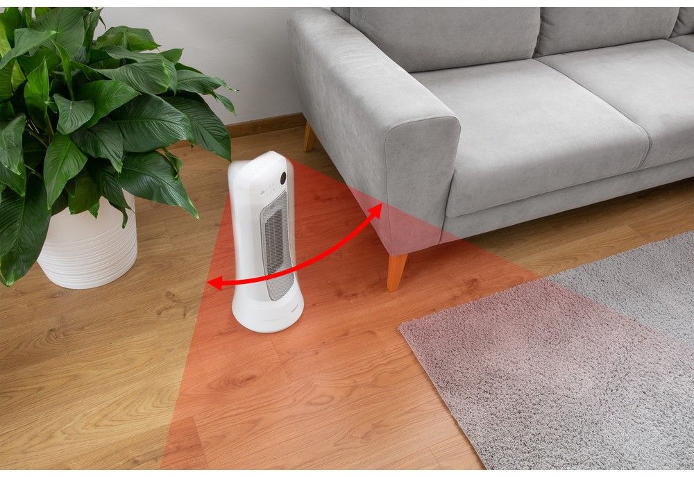 Keramické topidlo s možností nastavení oscilace 80°. Také je možné nastavit jeho automatické vypnutí. Výhodou je dálkový ovladač a možnost nastavení teploty 5-35°C.