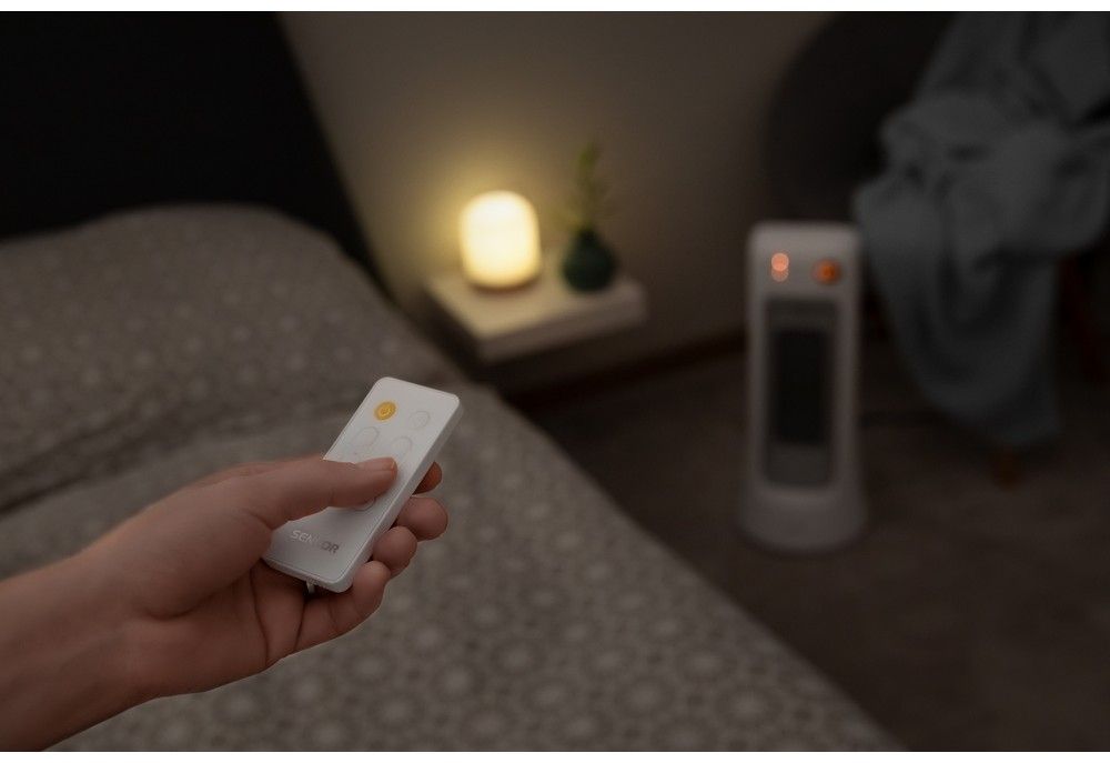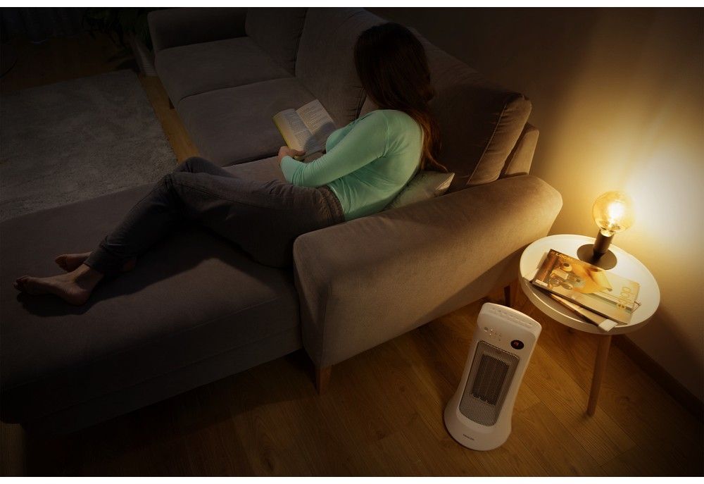 Používám PTC produkty, které mohou využívat jen keramická topidla. Keramické elementy mi zvyšují tepelný výkon, ale s nízkou spotřebou energie. Čím nižší je teplota v pokoji, tím více tepla dodávám. Jakmile teplota v místnosti stoupne, začnu pozvolna snižovat svůj výkon a tím i elektrickou spotřebu.OVLÁDÁM SE KOMFORTNĚ ZE VŠECH KOUTŮ MÍSTNOSTI.