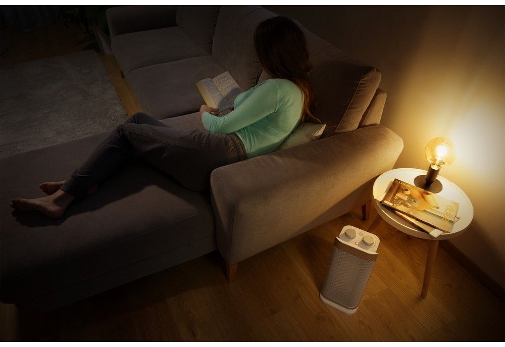 Mám několikanásobné zabezpečení, kterým zaručuji ochranu proti přehřátí i v případě převrhnutí. Základna je mi velkou oporou a stojí stabilně na koberci, podlaze i stolku. Také disponuji nízkou hodnotou hluku. V provozu nepřesahuji 56 dB(A), abych vás nerušilo při relaxaci, spánku nebo četbě