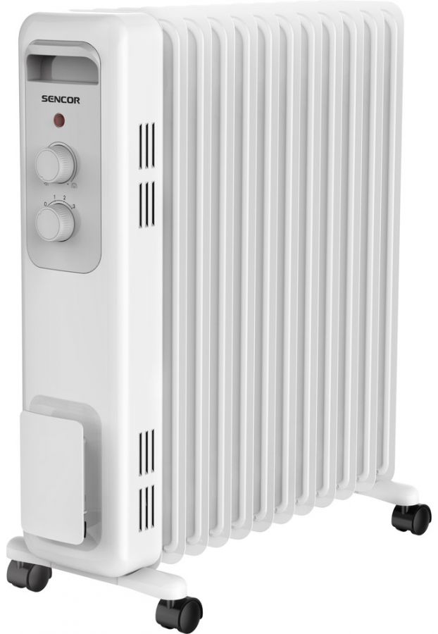 Elektrický olejový radiátor má 11 topných článků, ochranu proti přehřátí a příkon 2300 W.