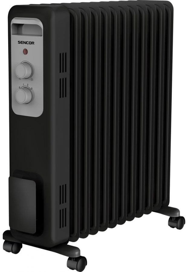Elektrický olejový radiátor má 11 topných článků, ochranu proti přehřátí a příkon 2300 W.